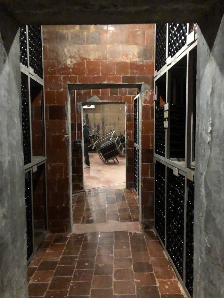 We’re at a Cava producer as we type this blog instalment. The Penedes region just outside of Barcelona is Cava country, so we couldn’t not swing by for a swig. Penedes is a small valley tucked in between 2 mountain chains west of Barcelona, and Montserrat towers over it’s northern end. We enjoyed a wonderful tour of the Cava making process, and got to sample 3 Cavas. It was great to learn more about Cava, a sparkling wine that’s less appreciated in the UK than its sparkling brethren Champagne and Prosecco. Which is a shame as it’s distinctive it its own right. It is made predominantly from Xarel-lo, a variety local to the Penedes region, they use the traditional method to produce Cava – the same method used to make champagne, and it has DO designation.