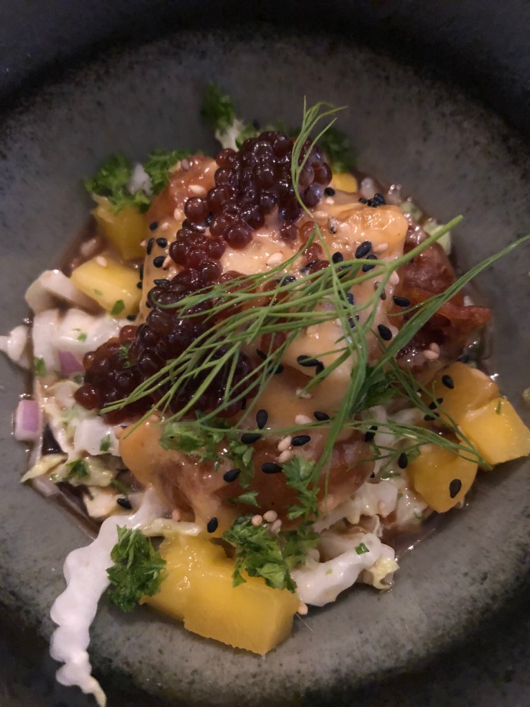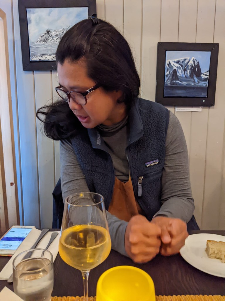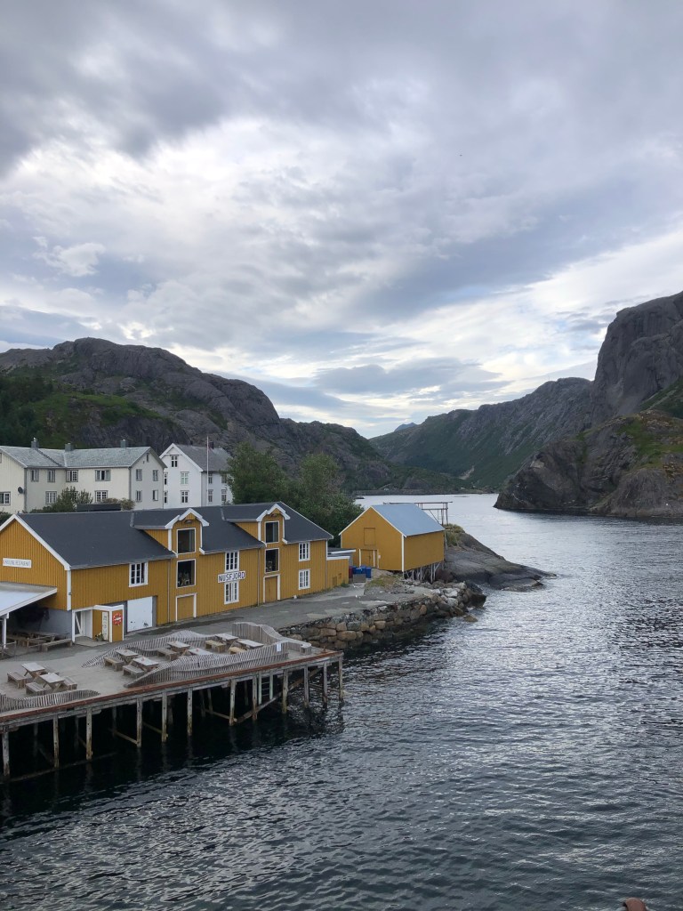 On our last evening in the Lofotens we had a nice meal at Maren Anna , a restaurant in neighbouring town Sørvagen. It was our first meal at a Norwegian restaurant. We did their tasting menu – all of the food was tasty and we particularly enjoyed the main course of stock fish. It was expensive though. We found food very expensive in Norway, both groceries and restaurant meals.