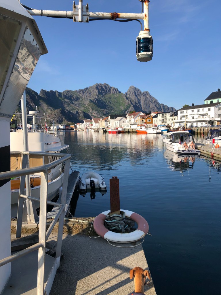Reine, we found, is a popular stop for tourists and has a choice of 2 campervan spots. We were pleased we chose the 240 NOK per night one, which is next to and no different from the 500 NOK per night one. We had a stroll around the town, enjoyed a drink in the evening sunshine and got some advice from the tourist office to get in the line for the ferry promptly in the morning.